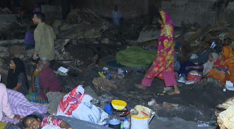 আগুনে সব হারিয়ে খোলা আকাশের নিচে রাত কাটাচ্ছে কড়াইল বস্তিবাসী।