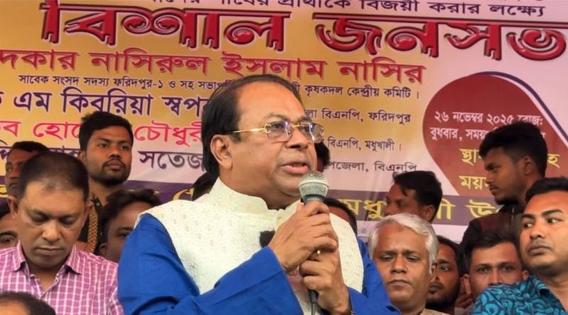 গতকাল বুধবার (২৬ নভেম্বর) বিকালে ফরিদপুরের মধুখালী ঈদগাহ মাঠে বিএনপির ভারপ্রাপ্ত চেয়ারম্যান তারেক রহমান ঘোষিত ৩১ দফা বাস্তবায়ন ও আসন্ন জাতীয় সংসদ নির্বাচনে বিএনপি মনোনীত প্রার্থীকে বিজয়ী করার লক্ষ্যে বিশাল জনসভায় তিনি এসব কথা বলেন।