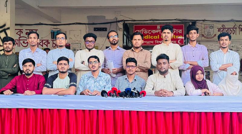 সংবাদ সম্মেলনে ‘অদম্য জবিয়ান ঐক্য’ প্যানেল নির্বাচন কমিশনের পক্ষপাত বন্ধ, আচরণবিধি কঠোরভাবে প্রয়োগ এবং নির্ধারিত তারিখে সুষ্ঠু নির্বাচন নিশ্চিত করার দাবি জানায়।