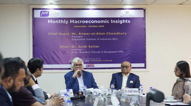 সেপ্টেম্বর-অক্টোবরের অর্থনৈতিক পরিস্থিতি নিয়ে আয়োজিত সেমিনারে সভাপতিত্ব করেন পিআরআইয়ের চেয়ারম্যান জাইদী সাত্তার। মূল প্রবন্ধ উপস্থাপন করেন সংস্থাটির প্রধান অর্থনীতিবিদ আশিকুর রহমান।