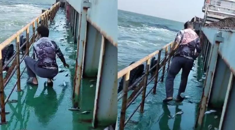 পায়রা বন্দরের রাবনাবাদ চ্যানেলের প্রথম বয়া ছাড়িয়ে প্রায় ৭০ কিলোমিটার গভীর সমুদ্রে ঘটেছে আশ্চর্যজনক এক ঘটনা। লাইটার জাহাজের ডেকে লাফিয়ে উঠল তিন মণ ইলিশ। শনিবার (২৯ নভেম্বর) সামাজিক যোগাযোগ মাধ্যম ফেসবুকে এ সংক্রান্ত একটি ভিডিও ছড়িয়ে পড়ে।