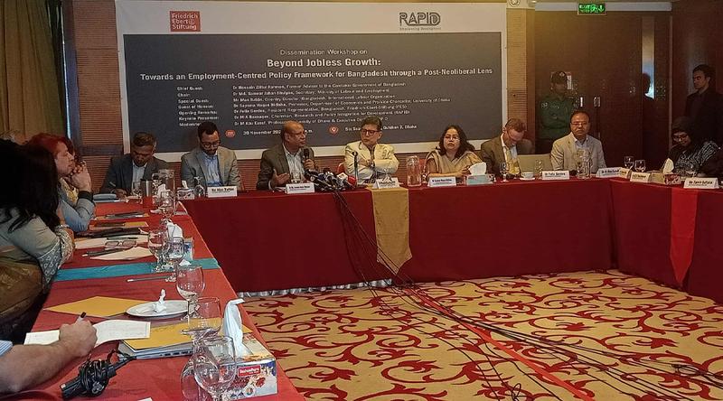 রোববার (৩০ নভেম্বর) রাজধানীর একটি হোটেলে ‘বিয়ন্ড জবলেস গ্রোথ: টুওয়ার্ডস অ্যান অ্যামপ্লয়মেন্ট-সেন্টার্ড পলিসি ফ্রেমওয়ার্ক ফর বাংলাদেশ থ্রু অ্যা পোস্ট-নিওলিবারেল লেন্স’ শীর্ষক অনুষ্ঠানে তিনি এ কথা বলেন।