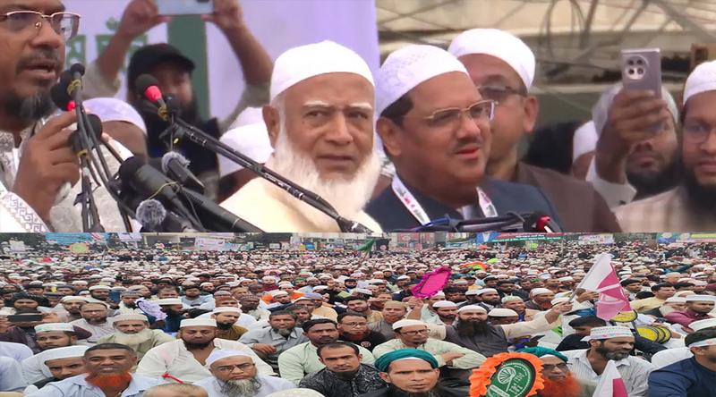 বক্তারা আরও বলেন, আমরা আর প্রতারণার ফাঁদে পড়তে চাই না। আগে গণভোট দিতে হবে, তারপর নির্বাচন। পিআর ব্যবস্থা উচ্চ এবং নিম্ন কক্ষে চালু করতে হবে। সরকারের প্রতি আবেদন, সোজা আঙুলে ঘি না উঠলে আঙুল বাঁকা করতে হবে। ৮ দলের ঐক্য ভাঙতে ষড়যন্ত্র চলছে, কিন্তু আমরা কোনো ষড়যন্ত্রকে এগোতে দেব না। আগামী সংসদে ইসলামী পতাকা উত্তোলনের জন্য যা যা প্রয়োজন, তা আমাদের করতে হবে।