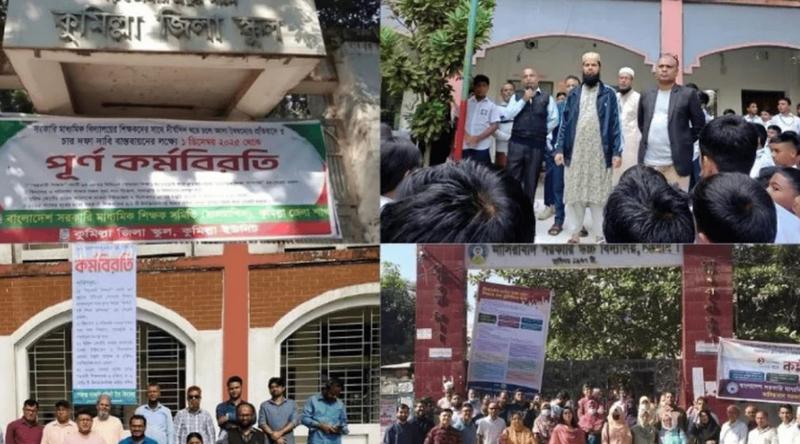 এদিকে এন্ট্রি–পদের বেতন ৯ম গ্রেডসহ চার দফা দাবিতে দুই দিনের অবস্থান কর্মসূচি ও আলটিমেটাম শেষে কোনো সমাধান না পেয়ে সোমবার থেকে পূর্ণদিবস কর্মবিরতি শুরু করেছে বাংলাদেশ সরকারি মাধ্যমিক শিক্ষক সমিতি। কর্মসূচির অংশ হিসেবে মাধ্যমিকের বার্ষিক পরীক্ষা, এসএসসি নির্বাচনী পরীক্ষা এবং খাতা মূল্যায়ন থেকেও শিক্ষকরা বিরত থাকবেন।