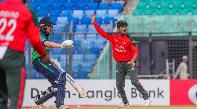 চট্টগ্রামে টস জিতে আগে ব্যাট করতে নেমে ১৯ ওভার ৫ বলে সবকটি উইকেট হারিয়ে ১১৭ রান করে আয়ারল্যান্ড। দলের হয়ে সর্বোচ্চ ৩৮ রান করে পল স্টার্লিং। বোলিংয়ে শুরুটা ভালো হয়নি বাংলাদেশের। আয়ারল্যান্ডকে প্রথম ওভারে ১৩ রান দেন মেহেদী হাসান। চতুর্থ ওভারের শেষ বলে শরিফুল ইসলামের শিকার হওয়ার আগে টিম টেক্টর (১৭) দুই চার ও এক ছয়ে ১৪ রান তোলেন।