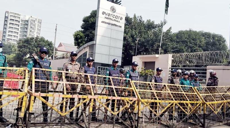 বুধবার (৩ ডিসেম্বর) সকালে রাজধানীর বসুন্ধরা এলাকায় অবস্থিত এভারকেয়ার হাসপাতাল ঘুরে দেখা গেছে, হাসপাতালটির প্রধান ফটকে ব্যারিকেড দিয়ে নিরাপত্তার দ্বায়িত্ব পালন করছেন আইনশৃঙ্খলা বাহিনীর সদস্যরা।