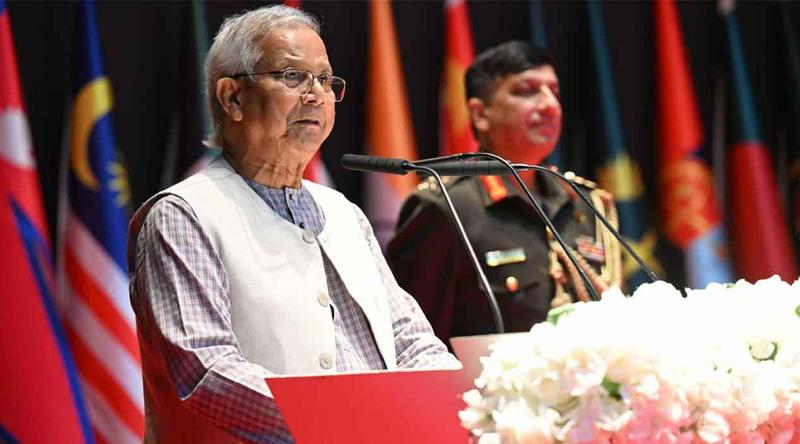ড. ইউনূস বলেন, সশস্ত্র বাহিনীর অগ্রগতি এবং আমাদের জাতীয় নিরাপত্তা উন্নয়ন ও নির্মাণ কর্মকাণ্ডে তাদের প্রিয় অবদান প্রত্যক্ষ করে আমি গর্বিত। আমাদের দেশকে রক্ষা করার জন্য আপনাদের অঙ্গীকার অনুকরণীয়। প্রাকৃতিক দুর্যোগ, রাজনৈতিক অস্থিরতা এবং অতিমারির মতো জাতীয় সংকটের সময় আপনাদের নিরন্তর প্রচেষ্টা আমাদের নাগরিকদের কল্যাণে আপনার অবিচল নিষ্ঠাকে প্রতিফলিত করে। তাছাড়া জাতিসংঘ শান্তিরক্ষা মিশনে অংশগ্রহণের মাধ্যমে বিশ্ব শান্তিতে আপনাদের অবদান বাংলাদেশের ভাবমূর্তি উজ্জ্বল করেছে।