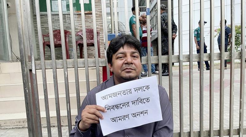 ইসির এই সিদ্ধান্তের প্রতিবাদে গত ৪ নভেম্বর থেকে তিনি নির্বাচন ভবনের সামনে আমরণ অনশনে বসেন। শীত ও অসুস্থতা উপেক্ষা করে টানা ১২৫ ঘণ্টা তিনি এই অনশন চালিয়ে যান। একই সময়ে ‘জনতার দল’ও নিবন্ধনের দাবিতে ইসির কাছে তাদের চূড়ান্ত আবেদন পুনর্বিবেচনার দাবি জানায়।