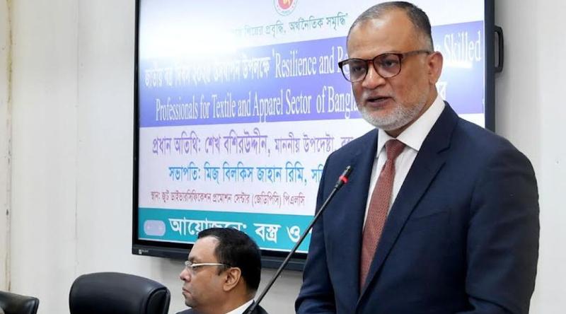 বৃহস্পতিবার (৪ ডিসেম্বর) জাতীয় বস্ত্র দিবস ২০২৫' উদযাপন উপলক্ষ্যে রাজধানীর জুট ডাইভারসিফিকেশন প্রমোশন সেন্টারে মন্ত্রণালয় কর্তৃক আয়োজিত ‘রেজিলিয়েন্স অ্যান্ড রিইনভেনশন: ক্রিয়েটিং স্কিল্ড প্রফেশনালস ফর টেক্সটাইল অ্যান্ড এপারেল সেক্টর অব বাংলাদেশ’ শীর্ষক সেমিনারে প্রধান অতিথির বক্তব্যে তিনি এ মন্তব্য করেন।
