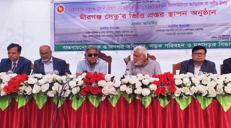 বরিশালের বাবুগঞ্জে আড়িয়াল খাঁ নদীর ওপর মীরগঞ্জ সেতুর ভিত্তিপ্রস্তর স্থাপন অনুষ্ঠানে নির্বাচন, উন্নয়ন আর সেতু নির্মাণ নিয়ে কথা বলেছেন সড়ক ও সেতু উপদেষ্টা ফওজুল কবির খান।