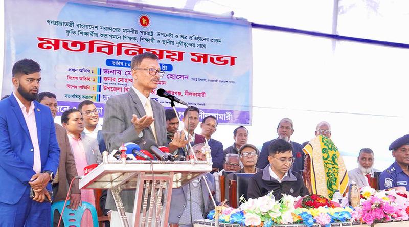 রোববার (৭ ডিসেম্বর) সকালে নীলফামারীর কিশোরগঞ্জ উপজেলার মাগুড়া উচ্চ বিদ্যালয় প্রাঙ্গণে শিক্ষক, শিক্ষার্থী ও স্থানীয় সুধীজনের সঙ্গে মতবিনিময় সভায় প্রধান অতিথির বক্তব্যে তিনি এসব কথা বলেন। মাগুড়া উচ্চ বিদ্যালয় এ সভার আয়োজন করে।