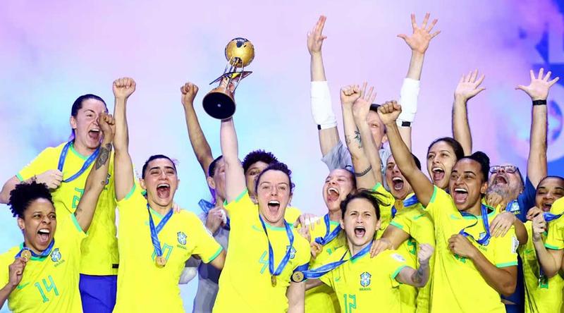ফিফা নারী ফুটসাল বিশ্বকাপে প্রথমবারের মতো চ্যাম্পিয়ন হয়েছে ব্রাজিল। রোববার (৭ ডিসেম্বর) ফিলিপাইনের মানিলার ফিলস্পোর্টস অ্যারেনায় অনুষ্ঠিত হাইভোল্টেজ ফাইনালে পর্তুগালকে ৩-০ গোলে হারিয়ে শিরোপা তুলে নেয় ব্রাজিলের নারীরা। পুরো টুর্নামেন্টে অপরাজিত থেকে চ্যাম্পিয়ন হয়েছে লাতিন আমেরিকার দলটি।
