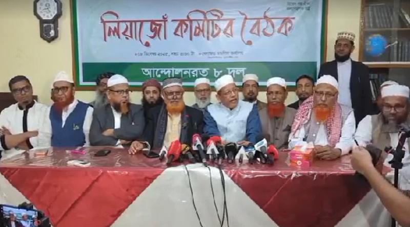 সোমবার (৮ ডিসেম্বর) রাতে দলগুলোর লিয়াজোঁ কমিটির জরুরি বৈঠক শেষে সংবাদ সম্মেলনে এ সিদ্ধান্তের কথা জানান নেতারা। সংবাদ সম্মেলনে আট দলের শরিক খেলাফত মজলিসের মহাসচিব আহমাদ আব্দুল কাদের জানান, গণভোটে ‘হ্যাঁ’ জয়যুক্ত করতে ডিসেম্বর মাসব্যাপী প্রচারণার কাজ করবে স্ব স্ব দল৷ একই দিনে গণভোট ও জাতীয় নির্বাচন মেনে নিলেও নির্বাচনে লেভেল প্লেয়িং ফিল্ড নিশ্চিত করা, ফ্যাসিস্ট অপরাধীদের বিচার ও ফ্যাসিবাদের সহযোগী রাজনৈতিক দলগুলোর ওপর নিষেধাজ্ঞার দাবি বহাল রয়েছে বলেও জানান আহমাদ আব্দুল কাদের।