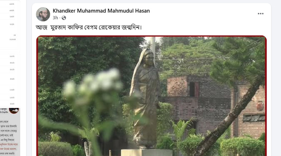 তিনি নিজের ফেসবুকে বেগম রোকেয়ার একটি ফটো কার্ড শেয়ার করে লিখেছেন, ‘আজ মুরতাদ কাফির বেগম রোকেয়ার জন্মদিন।’