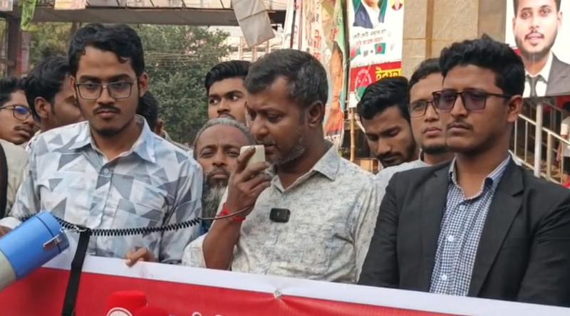 মঙ্গলবার (৯ ডিসেম্বর) জগন্নাথ বিশ্ববিদ্যালয়ের (জবি) তৃতীয় গেটসংলগ্ন শাঁখারীবাজার মোড়ে ‘বিশ্বজিৎ চত্বরে’ আয়োজিত মানববন্ধনে অংশ নিয়ে এ দাবি জানান তিনি। জবি কেন্দ্রীয় শিক্ষার্থী সংসদ (জকসু) নির্বাচনে ছাত্রশিবির–সমর্থিত ‘অদম্য জবিয়ান ঐক্য’ প্যানেল এই মানববন্ধনের আয়োজন করে।