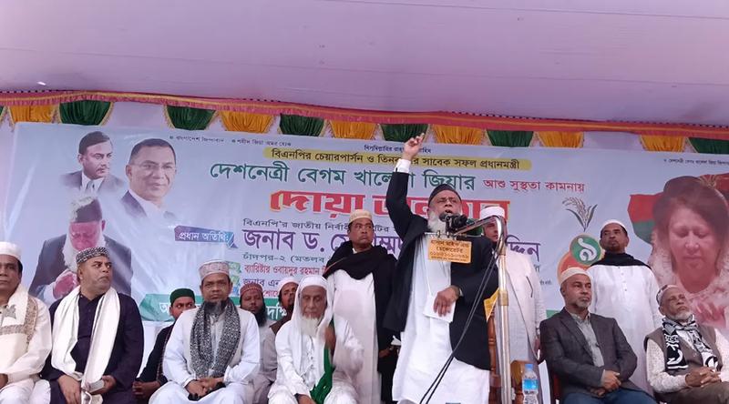মঙ্গলবার (৯ ডিসেম্বর) মতলব দক্ষিণ উপজেলার নিউ হোস্টেল মাঠে উপজেলা বিএনপি ও পৌর বিএনপির আয়োজিত বিএনপি চেয়ারপারসন দেশনেত্রী বেগম খালেদা জিয়ার আরোগ্য কামনায় দোয়া অনুষ্ঠানে প্রধান অতিথির বক্তব্যে এসব কথা বলেন তিনি।