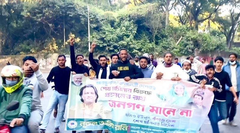 সামাজিক যোগাযোগ মাধ্যমে ছড়িয়ে পড়া এক ভিডিওতে দেখা যায়, সিআরবি এলাকায় ২০ থেকে ২৫ জন মিলে একটি ঝটিকা মিছিল করছে। তাদের হাতে ব্যানার দেখা গেছে। মিছিলে জয় বাংলা, জয় বঙ্গবন্ধু, শেখ হাসিনা আসছে, বাংলাদেশ জাগছে, স্লোগান দিতে দেখা গেছে।