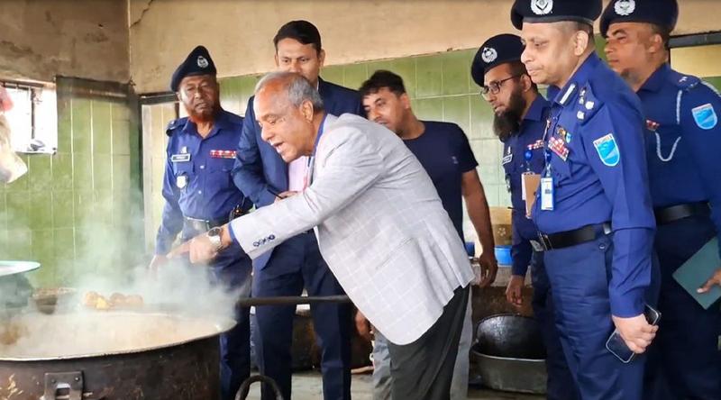 খাবারের মান দেখতে গিয়ে স্বরাষ্ট্র উপদেষ্টা মাংস ও আলুর অনুপাত নিয়ে প্রশ্ন তোলেন। বলেন, 'এখানে তো মাংসের চেয়ে আলু অনেক বেশি।' এক পর্যায়ে তিনি গণনা শুরু করেন। দেখেন আসলেই মাংসের চেয়ে আলুর টুকরোর পরিমাণ তুলনামূলক বেশিই। পাশাপাশি রান্নার কাজে নিয়োজিতদের সঙ্গে কথাও বলেন তিনি। চাল ও ডালের গোডাউনও ঘুরে দেখেন।