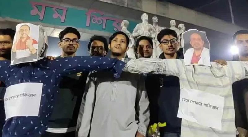 বিজয় দিবস নিয়ে ‘অশ্লীল মন্তব্য’ ও ‘কটূক্তির’ প্রতিবাদে ঢাকা বিশ্ববিদ্যালয়ে ইউটিউবার ইলিয়াস হোসেন ও পিনাকী ভট্টাচার্যের কুশপুত্তলিকাদাহ করেছেন একদল শিক্ষার্থী।