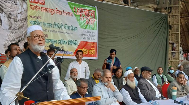 প্রধান উপদেষ্টাকে উদ্দেশ করে কাদের সিদ্দিকী বলেন, ‘আমি আপনাকে চিনতে পারি নাই। আমার আগে আপনাকে শেখ হাসিনা চিনেছে। দেশের মানুষ চিনেছে। শেখ হাসিনার অন্যায়, বঙ্গবন্ধুর অন্যায় নয়।শেখ হাসিনার অন্যায় আওয়ামী লীগের অন্যায় নয়। মুক্তিযুদ্ধের অন্যায় নয়। এই আওয়ামী লীগকে জন্ম দিয়েছিলেন শেখ মুজিব, শামসুল হক। শেখ হাসিনা জন্ম দেন নাই।শেখ হাসিনার বিচার করবেন ভালো কথা। কিন্ত আওয়ামী লীগের বিচার করবেন, তা পারবেন না। আইয়ুব খান পারে নাই, ইয়াহিয়া খানও পারে নাই। আপনারাও পারবেন না।’