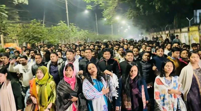 বৃহস্পতিবার (১১ ডিসেম্বর) তপশিল ঘোষণার পর রাতেই টিএসসি চত্বর থেকে তাৎক্ষণিক এই মিছিল বের করেন সংগঠনের নেতাকর্মীরা।