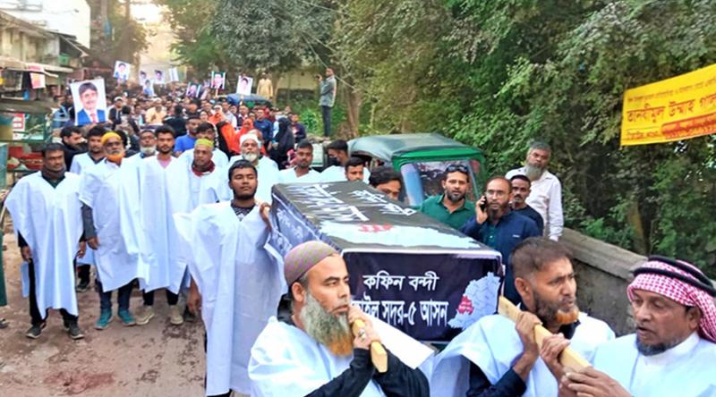 টাঙ্গাইল-৫ (সদর) আসনে সুলতান সালাউদ্দিন টুকুর বিএনপি ঘোষিত মনোনয়ন বাতিলের দাবিতে কফিন মিছিল করেছে দলটির মনোনয়নপ্রত্যাশী টাঙ্গাইল জেলা বিএনপির সাধারণ সম্পাদক অ্যাডভোকেট ফরহাদ ইকবালের সমর্থকরা।