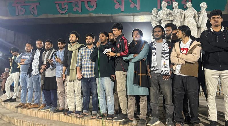 শুক্রবার (১২ ডিসেম্বর) সন্ধ্যায় বিশ্ববিদ্যালয়ের সন্ত্রাসবিরোধী রাজু ভাস্কর্যে এই বিক্ষোভ সমাবেশ অনুষ্ঠিত হয়।