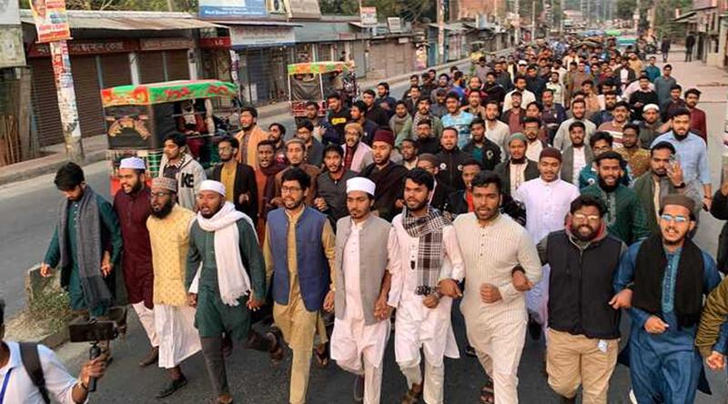 শুক্রবার (১২ ডিসেম্বর) বিকেল সাড়ে চারটার দিকে বিশ্ববিদ্যালয়ের শহীদ মিনার চত্বর থেকে মিছিলটি শুরু হয়। পরে ক্যাম্পাসের বিভিন্ন সড়ক প্রদক্ষিণ শেষে কাজলা গেট হয়ে তালাইমারী মোড়ে সমাবেশে মিলিত হয়।