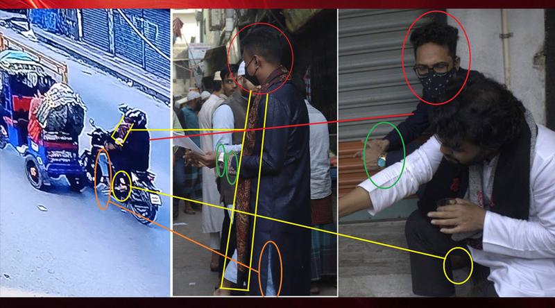 গুলিকারী দুইজনের মধ্যে একজনের গায়ে কালো পাঞ্জাবি, কালো মাস্ক, গলায় চাদর এবং পরণে আকাশি রঙের প্যান্ট ছিল।