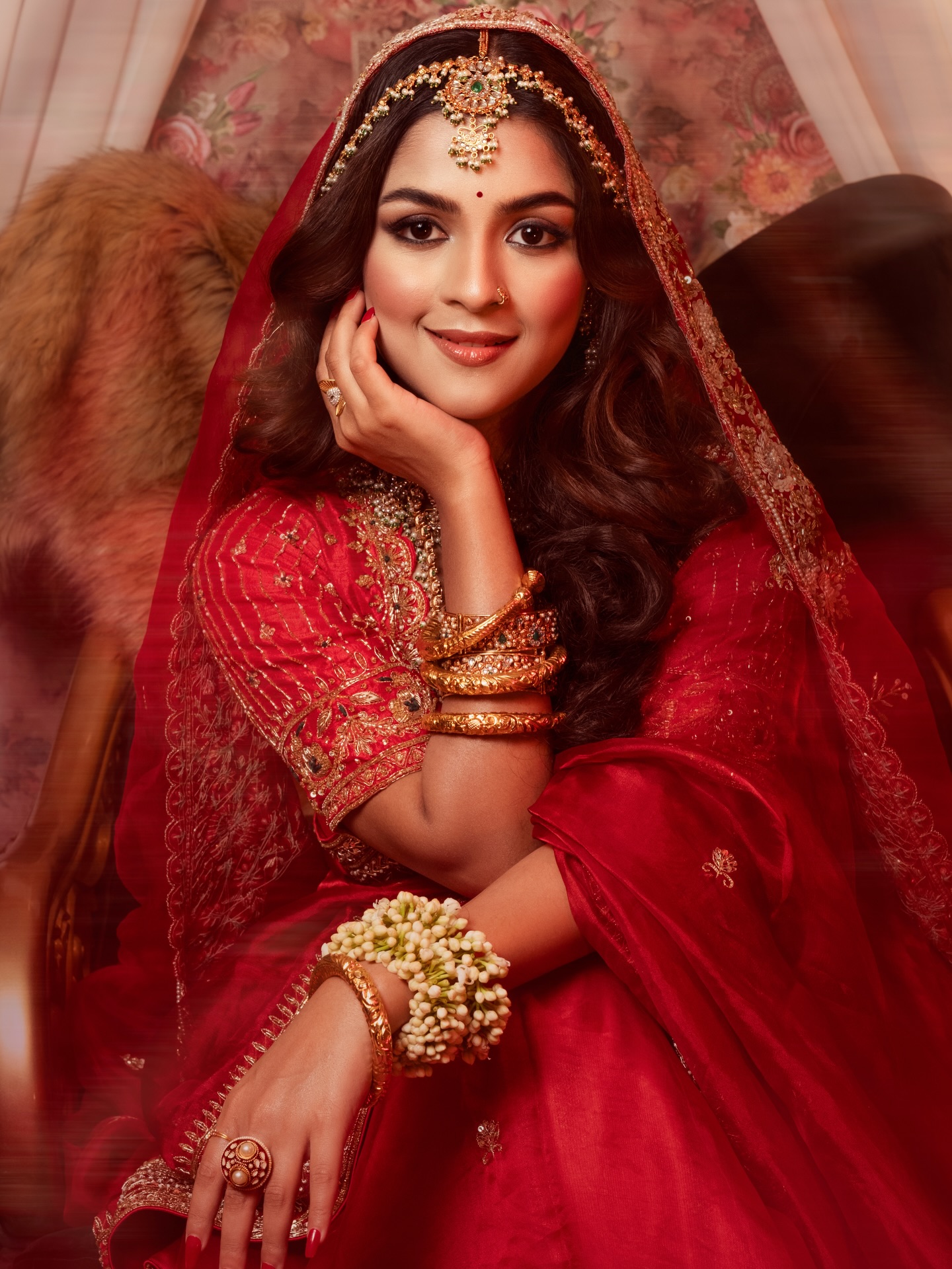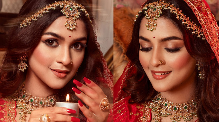 অলঙ্কারেও ছিল আভিজাত্যের ছোঁয়া। মাথায় টিকলি ও ঝাপটা-সহ মানানসই মাঙ্গটিকা, গলায় কুন্দন-পাথর বসানো ভারী নেকলেস, হাতে চওড়া সোনালি চুড়ি ও বালা- প্রতিটি অনুষঙ্গেই ফুটে উঠেছে ঐতিহ্যবাহী সৌন্দর্য।