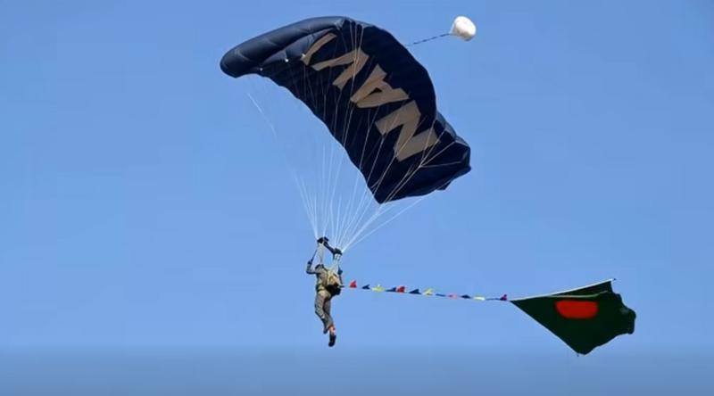 প্যারাস্যুটিং প্রদর্শনীতে অংশ নেন ‘টিম বাংলাদেশ’-এর ৫৪ জন প্যারাট্রুপার। এটি বিশ্বের সর্বাধিক পতাকা হাতে প্যারাস্যুটিং যার মাধ্যমে বিশ্ব রেকর্ড সৃষ্টি হয়েছে। এই ঐতিহাসিক আয়োজন প্রত্যক্ষ করেন প্রধান উপদেষ্টা অধ্যাপক ড. মুহাম্মদ ইউনূস।