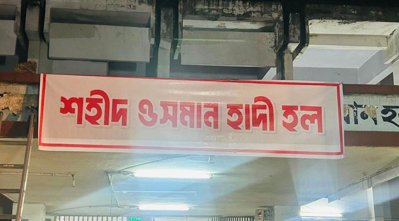 ঢাকা বিশ্ববিদ্যালয়ের (ঢাবি) শিক্ষার্থীরা বঙ্গবন্ধু শেখ মুজিবুর রহমান হলের নাম পরিবর্তন করে শহীদ ওসমান হাদী হল নামকরণ করেছেন। সেখানে ‘শহীদ ওসমান হাদী হল’ নামে ব্যানার লাগিয়ে দিয়েছেন তারা।