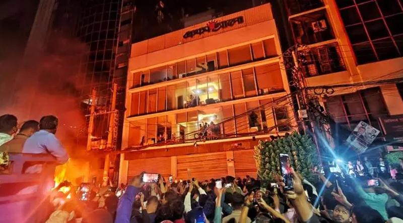 এর আগে, বৃহস্পতিবার রাত ১২টার দিকে কয়েকশ' বিক্ষুব্ধ ব্যক্তি প্রথমে দৈনিক প্রথম আলো, তারপর দ্য ডেইলি স্টার পত্রিকা অফিসে হামলা চালিয়ে ভাঙচুর ও অগ্নিসংযোগ করে।