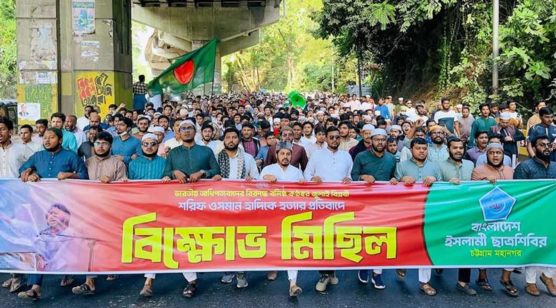 ইনকিলাব মঞ্চের আহ্বায়ক শরিফ ওসমান হাদিকে হত্যার প্রতিবাদে চট্টগ্রামে বিক্ষোভ মিছিল মহানগর ছাত্রশিবির। শুক্রবার (১৯ ডিসেম্বর) নগরের জমিয়তুল ফালাহ জামে মসজিদ থেকে দেওয়ানহাট অভিমুখে মিছিলটি যাত্রা শুরু করে এবং দেওয়ানহাট মোড়ে মিলিত হয়।