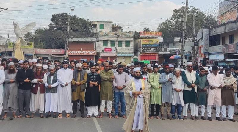 ঝিনাইদহে ইনকিলাব মঞ্চের মুখপাত্র শরিফ ওসমান হাদির গায়েবানা জানাজা অনুষ্ঠিত হয়েছে।