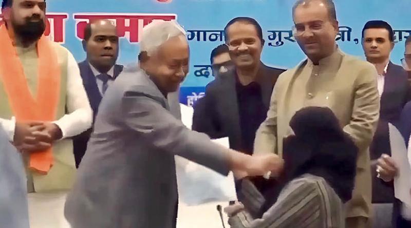 ভারতীয় সংবাদমাধ্যম দ্য হিন্দু বলছে, গত ১৫ ডিসেম্বর নবনিযুক্ত আয়ুষ চিকিৎসকদের (আয়ুর্বেদিক, হোমিওপ্যাথিক ও ইউনানি) নিয়োগপত্র বিতরণের সময় নুসরাত পারভীন যখন মঞ্চে গিয়ে নিয়োগপত্র নিতে এগিয়ে যান তখন বিহারের মুখ্যমন্ত্রী নীতিশ কুমার তার হিজাব টেনে নামিয়ে দেন। নুসরাত পারভীন পাটনার সরকারি তিব্বি কলেজ ও হাসপাতালের স্নাতকোত্তর শিক্ষার্থী।