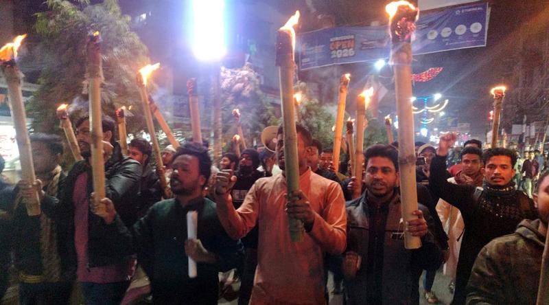 ফেনীতে হাদির ঘটনায় জড়িতদের বিচারের দাবিতে এনসিপির মশাল মিছিল