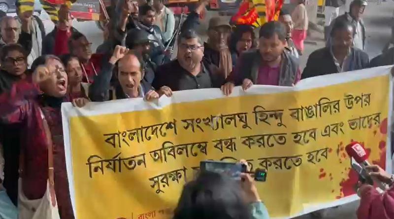 বাংলাদেশে সংখ্যালঘুদের ওপর নির্যাতনের অভিযোগ তুলে তাদের সুরক্ষার দাবিতে, শনিবার (২০ ডিসেম্বর) ভারতীয় সময় বিকেল ৪টার দিকে কলকাতার বেগ বাগান ও পার্ক সার্কাস সাত রাস্তার মোড়ে জড়ো হয় 'বাংলাপক্ষ' নামে একটি সংগঠনের শতাধিক নেতাকর্মী। পরে, বাংলাদেশ উপ দূতাবাসের দিকে মিছিল নিয়ে গেলে তাদের আটকে দেয় কলকাতা পুলিশ।