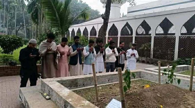 রোববার (২১ ডিসেম্বর) সকাল ৭টার দিকে ঢাকা বিশ্ববিদ্যালয়ের কেন্দ্রীয় জামে মসজিদের পাশে অবস্থিত শহীদ শরীফ ওসমান হাদির কবর জিয়ারত করেন তারা।
