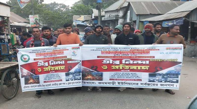 ময়মনসিংহের ভালুকায় মিথ্যা ধর্ম অবমাননার অভিযোগ তুলে শ্রমিক দীপু চন্দ্র দাসকে পিটিয়ে হত্যার পর আগুন দিয়ে পুড়িয়ে দেওয়া অপরাধীদের দ্রুত শাস্তি দাবিতে মাদারীপুরে প্রতিবাদ মিছিল ও সমাবেশ করা হয়েছে।