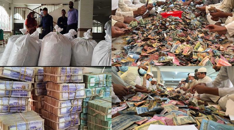 কিশোরগঞ্জের ঐতিহাসিক পাগলা মসজিদে দান সিন্দুক থেকে পাওয়া ৩৫ বস্তা টাকা গণনায় ৪ ঘণ্টায় ৮ কোটি ২৩ লাখ টাকা পাওয়া গেছে। এখনও গণনা চলছে। ৩ মাস ২৭ দিন পর মসজিদের ১৩টি দান সিন্দুক খুলে ৩৫ বস্তা টাকা, বিপুল পরিমাণ স্বর্ণালঙ্কার ও বৈদেশিক মুদ্রা পাওয়া যায়।