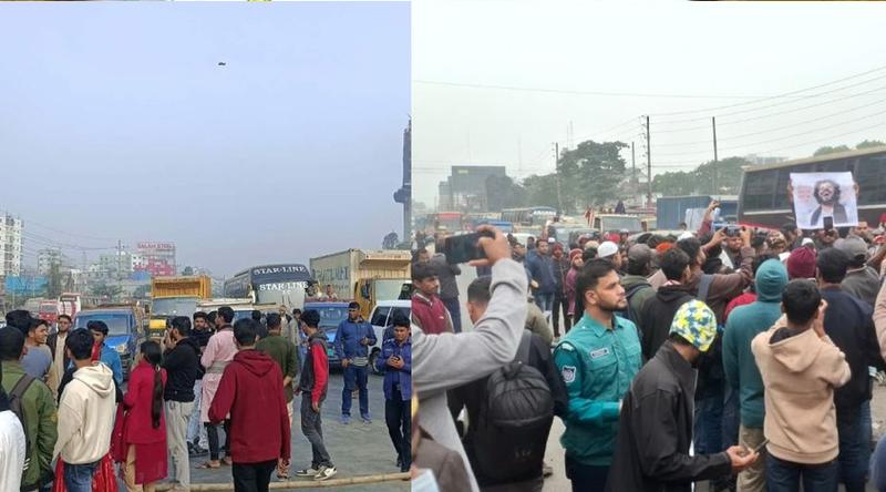 ইনকিলাব মঞ্চের আহ্বায়ক শরিফ ওসমান হাদির হত্যাকারীদের গ্রেফতার ও বিচারের দাবিতে কেন্দ্রীয় কর্মসূচির অংশ হিসেবে রোববার গাজীপুরের টঙ্গীতে মহাসড়ক অবরোধ করেছে ছাত্র-জনতা। এতে বন্ধ হয়ে যায় ঢাকা-ময়মনসিংহ মহাসড়কের যান চলাচল। ভোগান্তিতে পড়েন যাত্রীরা।