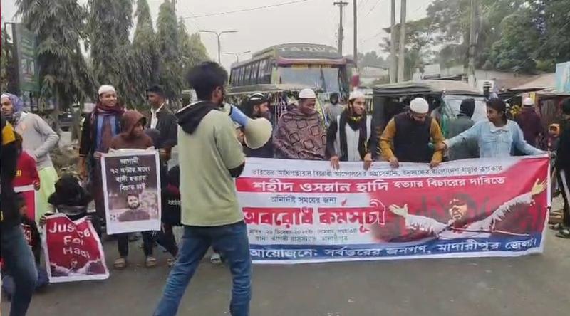 হাদি হত্যার বিচারের দাবিতে মাদারীপুরে মহাসড়কে বিক্ষোভ