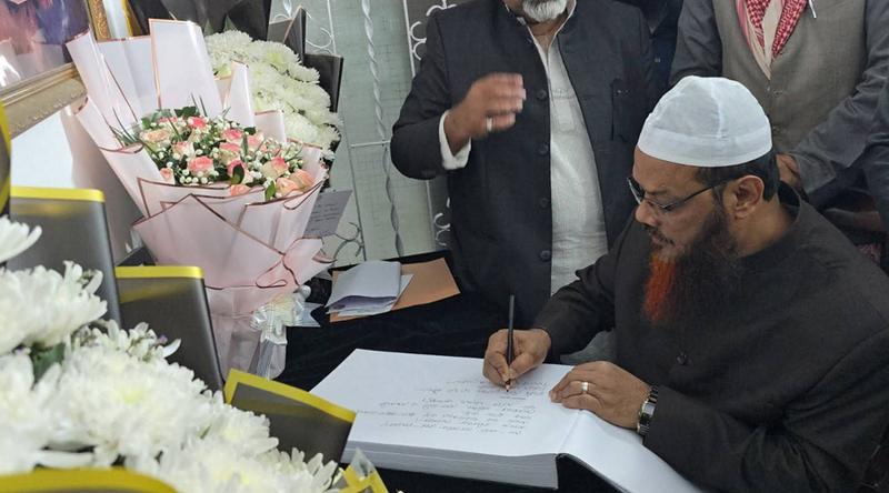 মঙ্গলবার (৩০ ডিসেম্বর) সন্ধ্যায় সেখানে রাখা শোক বইতে দলের পক্ষ থেকে শোকবার্তা দেন এবং বিএনপির নেতৃবৃন্দের সঙ্গে সাক্ষাত করে সমবেদনা জানান। শোক বইয়ে শায়েখে চরমোনাই লিখেন, দেশ একজন দেশপ্রেমিক নেতৃত্ব হারালো। আমরা গভীরভাবে শোকাহত। আমরা তার মাগফিরাতের জন্য মহান আল্লাহর দরবারে দোয়া করি।