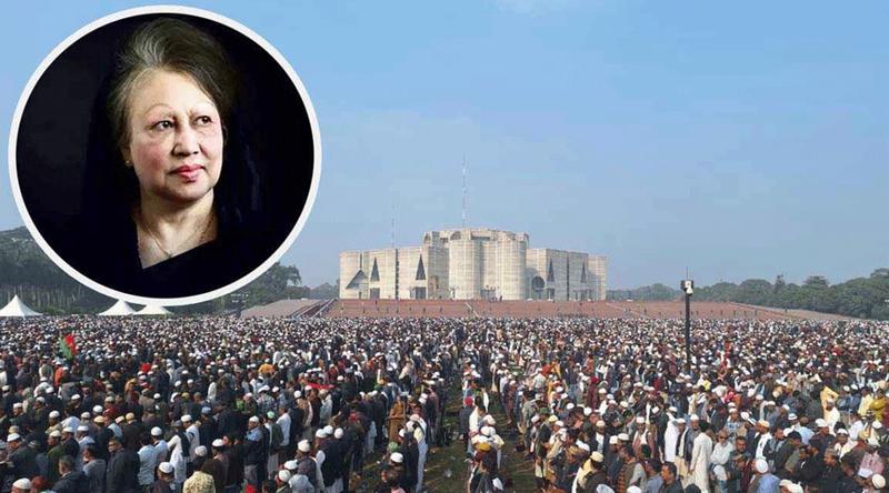জাতীয় সংসদ ভবনের দক্ষিণ প্লাজা ও মানিক মিয়া এভিনিউয়ে বুধবার (৩১ ডিসেম্বর) ৩টার দিকে বিএনপির চেয়ারপারসন ও বাংলাদেশের সাবেক প্রধানমন্ত্রী বেগম খালেদা জিয়ার জানাজা অনুষ্ঠিত হয়। এতে লাখো মানুষের অংশ নেন। দেশবাসীসহ জানাজায় অংশগ্রহণকারী সকলের প্রতি আন্তরিক কৃতজ্ঞতা প্রকাশ করেছেন বিএনপির ভারপ্রাপ্ত চেয়ারম্যান তারেক রহমান।