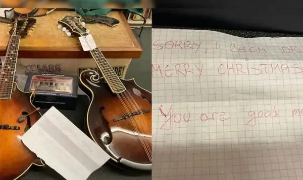 চুরি করার পর সাধারণত চোর পালিয়ে বাঁচার চেষ্টা করে, কিন্তু যুক্তরাষ্ট্রের নিউ জার্সিতে ঘটল এক উল্টো ঘটনা। বড়দিনের ঠিক আগে দোকান থেকে দুটি দামি বাদ্যযন্ত্র (ম্যান্ডোলিন) চুরি করার পর, অনুতপ্ত চোর নিজেই তা ফেরত দিয়ে গেছে। শুধু তাই নয়, সঙ্গে রেখে গেছে একটি হাতে লেখা ক্ষমা চাওয়ার চিঠিও।