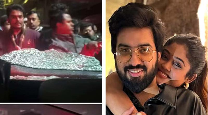 দেখা যাচ্ছে, গাড়ির কাচ তোলা। এ দিকে গাড়ি ঘিরে অনুরাগীদের জটলা। গাড়ি নড়ার মতো অবস্থা নেই। এ দিকে উপচে পড়া ভিড় একেবারে হুমড়ি খেয়ে পড়ছে গাড়ির উপরে। বারকয়েক গাড়ির গায়ে ঘুঁষিও পড়ে। ভিডিয়োয় শোনা যায় পরম্পরার গলা, ‘‘শান্ত থাকো। নববর্ষের শুভেচ্ছা।’’ তখনও মুখে হাসি ছিল সচেতের। কিন্তু আচমকাই ঝনঝন আওয়াজে ভেঙে গুঁড়িয়ে গেল গাড়ির পিছনের কাচ। একদল উত্তেজিত জনতার হাতেই কাচ ভাঙে এবং এর পরে তাদের নিজেদের মধ্যেই বিবাদ শুরু হয়ে যায়।