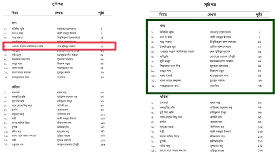 জানা গেছে, মাধ্যমিকের অষ্টম শ্রেণির ‘সাহিত্য কণিকা’ পাঠ্যবইয়ে অন্যান্যবার গদ্যাংশে শেখ মুজিবুর রহমানের ৭ মার্চের ভাষণ হিসেবে এবারের সংগ্রাম স্বাধীনতার সংগ্রাম অংশটুকু গুরুত্বসহকারে তুলে ধরা হতো। বইটির ৩১ থেকে ৩৬ পৃষ্ঠাজুড়ে ৭ মার্চের অবদান তুলে ধরে পুরো তার ভাষণটি তুলে দেওয়া হয়েছিল।