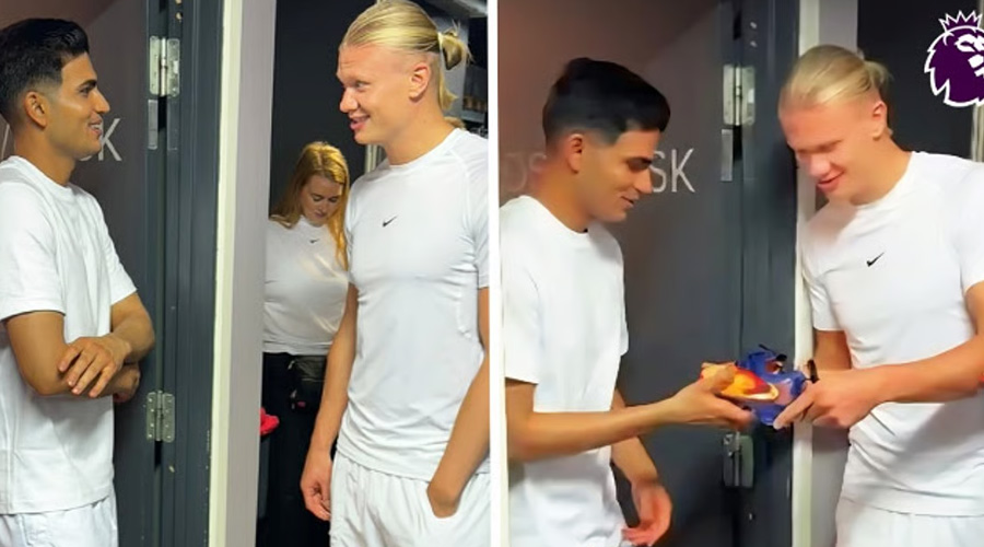ইভেন্টে সাদা নাইকি কিটে হাজির হয়ে দু’জন একে অপরের সঙ্গে স্বাক্ষরিত স্মারক বিনিময় করেন। ভাইরাল ভিডিওতে দেখা যায়, হালান্ড নিজের সই করা ফুটবল বুট উপহার দেন গিলকে, যা পেয়ে ভারতীয় অধিনায়ককে বেশ আবেগাপ্লুত দেখায়।