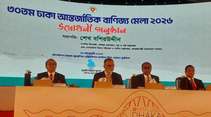 শনিবার (৩ জানুয়ারি) বেলা সাড়ে ১১টায় ঢাকা আন্তর্জাতিক বাণিজ্যমেলার উদ্বোধনী অনুষ্ঠানে এ ঘোষণা দেন বাণিজ্য উপদেষ্টা শেখ বশিরউদ্দীন।